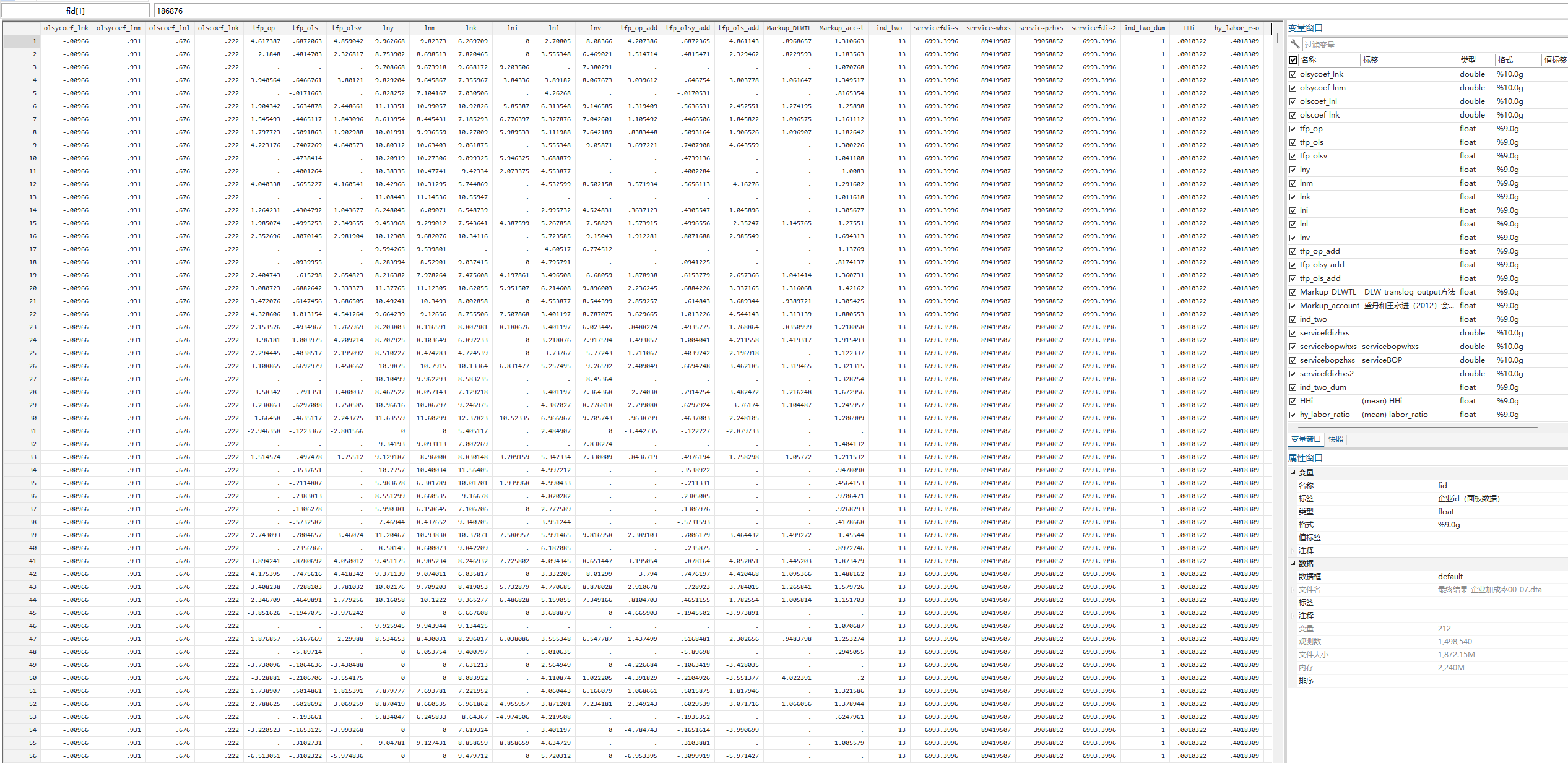 ②加成率方法:方法来源于AER de loecker2012,代码是中间品法计算(并非使用劳动要素投入计算,用劳动要素投入计算会有较大概率被外审质疑,目前基本都是中间品投入计算),采用超越函数。保证算的对,与现有许多顶刊研究结果保持接近!