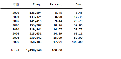 ③已经算好的数据区间为2000-2007年