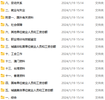 《中国劳动统计年鉴》共分为13个部分:1.综合;2.就业与失业;3.城镇单位就业人员和劳动报酬;4.国有单位就业人员和劳动报酬;5.城镇集体单位就业人员和劳动报酬;6.其他单位就业人员和劳动报酬;7.乡镇企业就业人员;8.职业培训与技能鉴定;9.劳动关系;10.社会保障;11.工会工作;12.香港资料;13.澳门资料。书末还附有国外有关资料和主要统计指标解释。