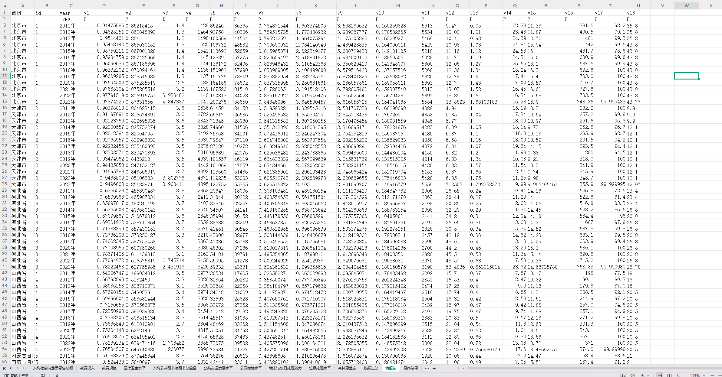 利用熵值法进行体系指标测算,具体过程详见附表。