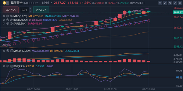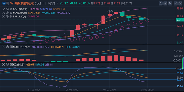 【原油消息面分析】:周四(1月2日)欧市盘中,目前西德克萨斯中质原油(WTI)市场表现积极,但分析师认为,由于上方存在大量阻力,市场的多头情绪略显谨慎;从整体来看,尽管原油市场的长期趋势可能偏向上涨,但短期内的走势可能受到多重因素的影响。