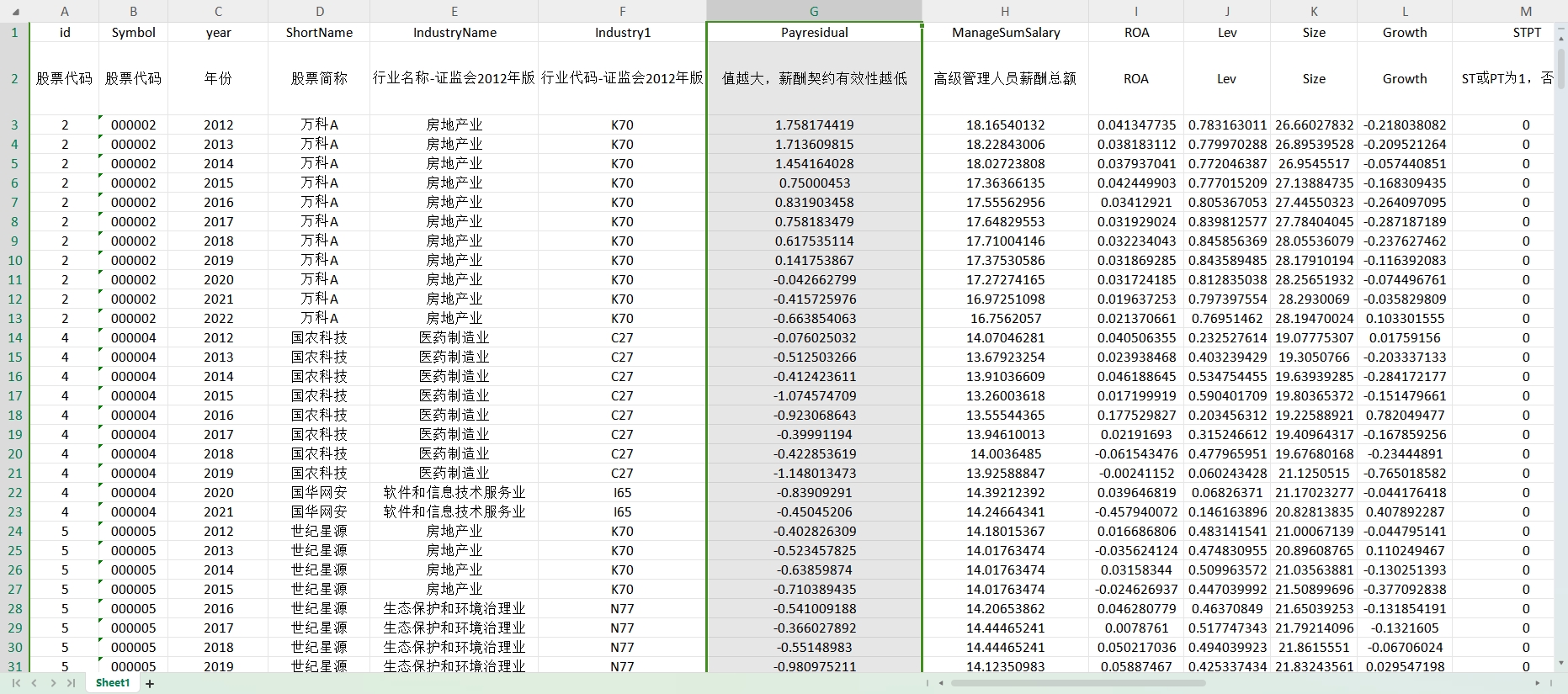 Payresidual:高管薪酬契约有效性。该变量越大,薪酬契约有效性越低。