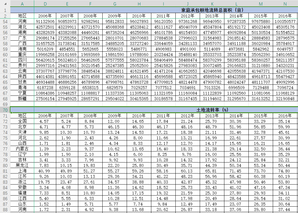 二、2005-2022年全国土地流转数据(耕地面积、流转面积、流转率等)