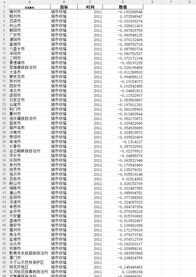 的时候出现城市收缩现象,计算得出2011-2023年的各地级市的城市收缩情况。