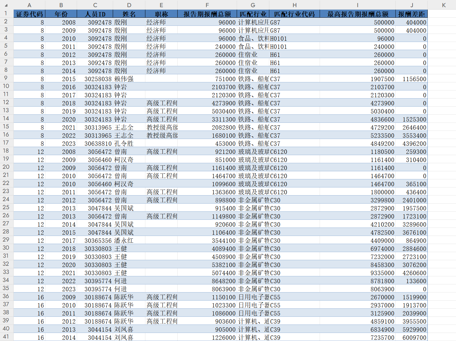 职称 | 报告期报酬总额 | 匹配行业 | 匹配行业代码 |