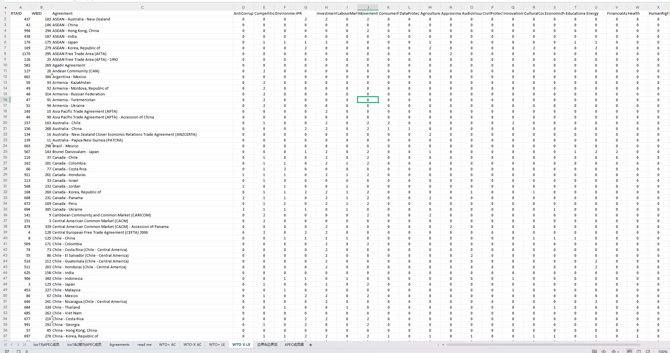 - 亚太经合组织(APEC) 21国区域贸易协定深度数据 拆分成国家对形式