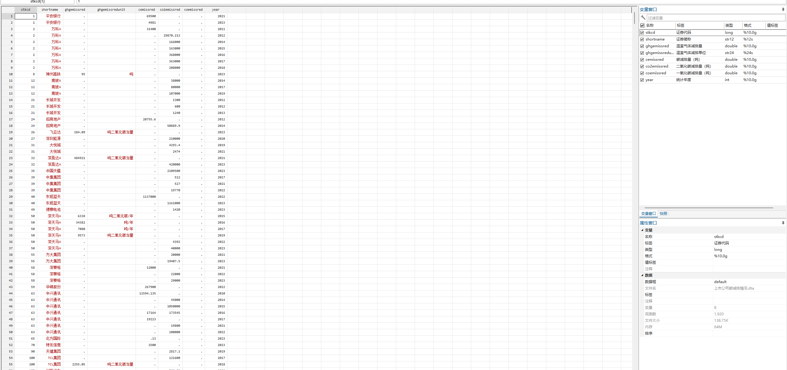 上市公司碳减排情况由上市公司通过社会责任报告、环境报告、年度报告等直接披露不,此数据为研究者提供了全面、详尽的碳排放与减排情况,使得学者能够深入分析碳排放的规律、趋势及影响因素,还促进了环境科学、经济学、社会学等多个学科的交叉融合,为制定科学的减排策略和政策提供了有力的数据支撑。