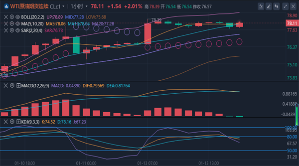 【原油消息面分析】:油价周一(1月13日)亚市早盘触及逾三个月来的最高水平,延续上周五涨势,因市场预期美国加大力度制裁俄罗斯石油业,将导致俄对中印供应受抑;另外,上周五出炉美国非农就业报告表现强劲,也提振了市场对原油需求增长的信心;