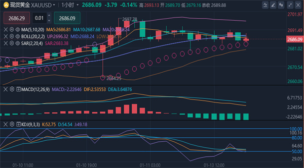 【黄金技术面分析】:日线方面,日线持续四连阳,价格是有效运行短期均线和布林中轨之上的,即使尾盘出现了回落,形态依旧是如此,这就足以体现多头的优势没有改变,目前短期均线再次跟随上移形成支撑,其它各周期指标保持多头排列,布林带整体继续向上延伸,加之macd指标双线金叉向上形态,更是表现出充足的上扬势能,所以日线整体看来,多头再冲新高将是大概率。4小时方面,经过上周五美盘的震荡巩固,可以确认黄金已经企稳2665,这点从美盘时段收取一根较长下影线大阳线足以体现,而除此之外,目前短期均线于2685和2678构成上扬形态,其它各周期指标也呈现多头排列,加之布林带整体向上开口,macd指标双线以金叉上扬形态,上行势能表现充足,因此4小时级别整体应属多头占据优势。综合来看,黄金今日短线操作思路上以回调做多为主,反弹高空为辅,黄金策略:反弹触及2695-2697区间做空,止损2705,目标2685-2680下破持有;如若先回撤2680-2678区间做多,止损2672,目标2685-2690;