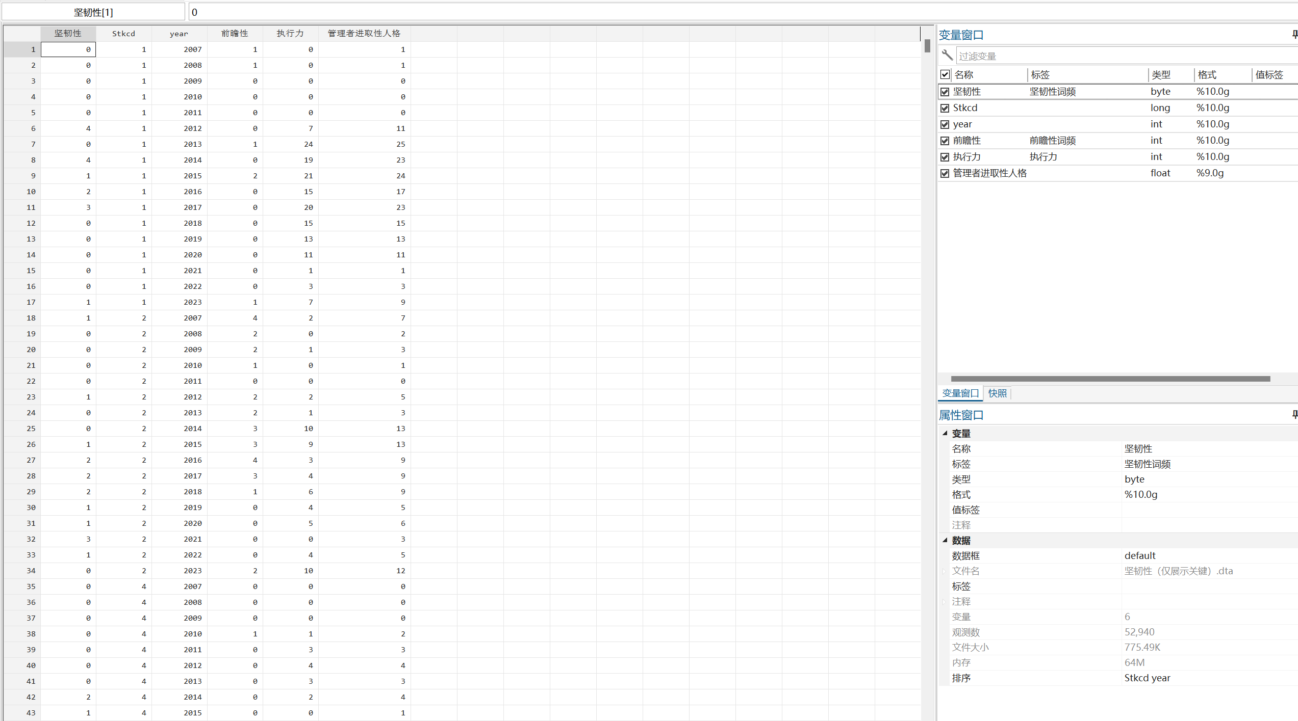 [经管数据集] 【2023】上市公司企业管理者进取性人格数据2007年-2023年 |