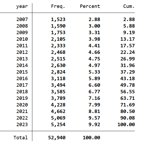 2007-2023年