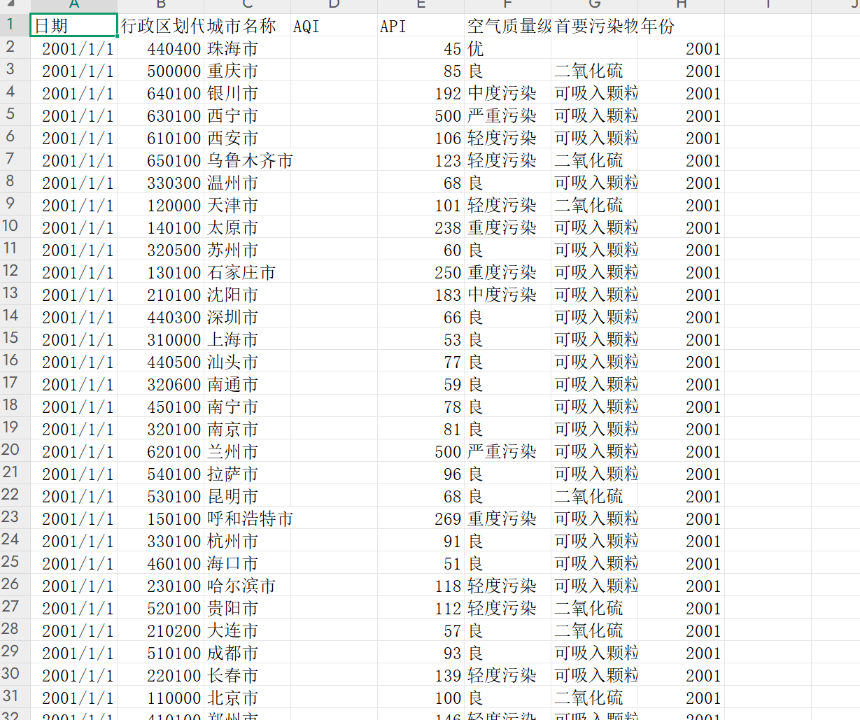 中国城市空气质量每日数据、良好天数(2001-2024.12).zip