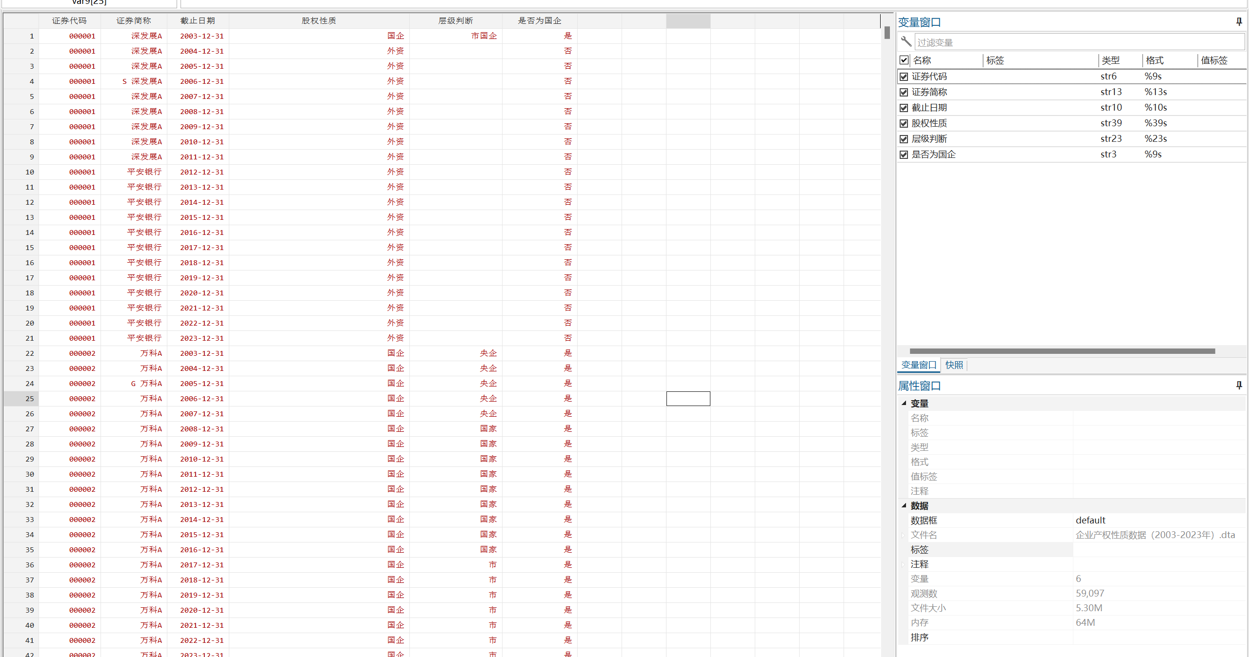 证券代码、证券简称、截止日期、股权性质、层级判断、是否为国企。