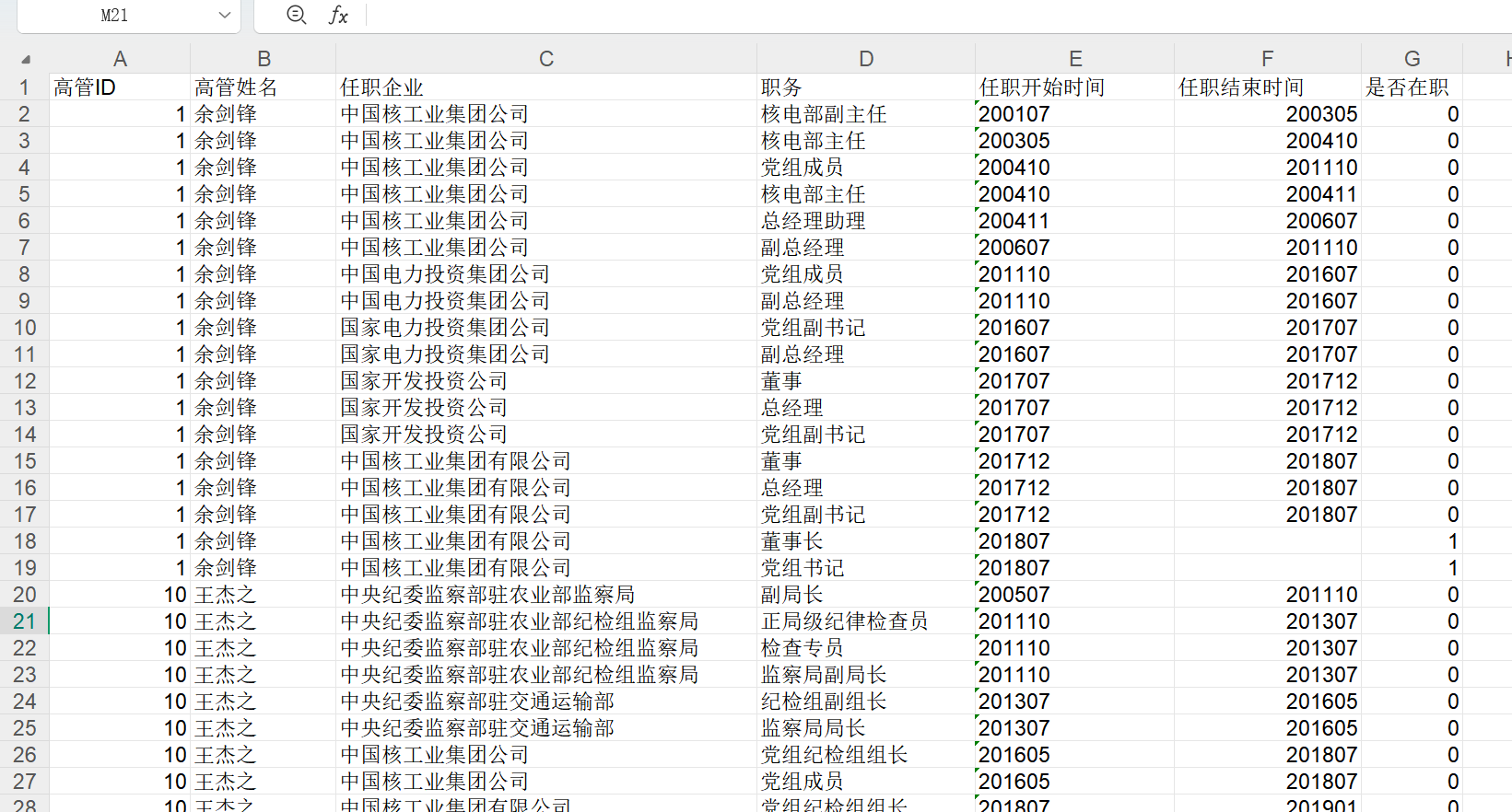 介绍:央企集团是国家的经济命脉,他们在国家发展中担负着重要责任,高管是公司决策制定和实施的核心群体,央企高管工作经历数据为研究央企高管行为提供了数据参考