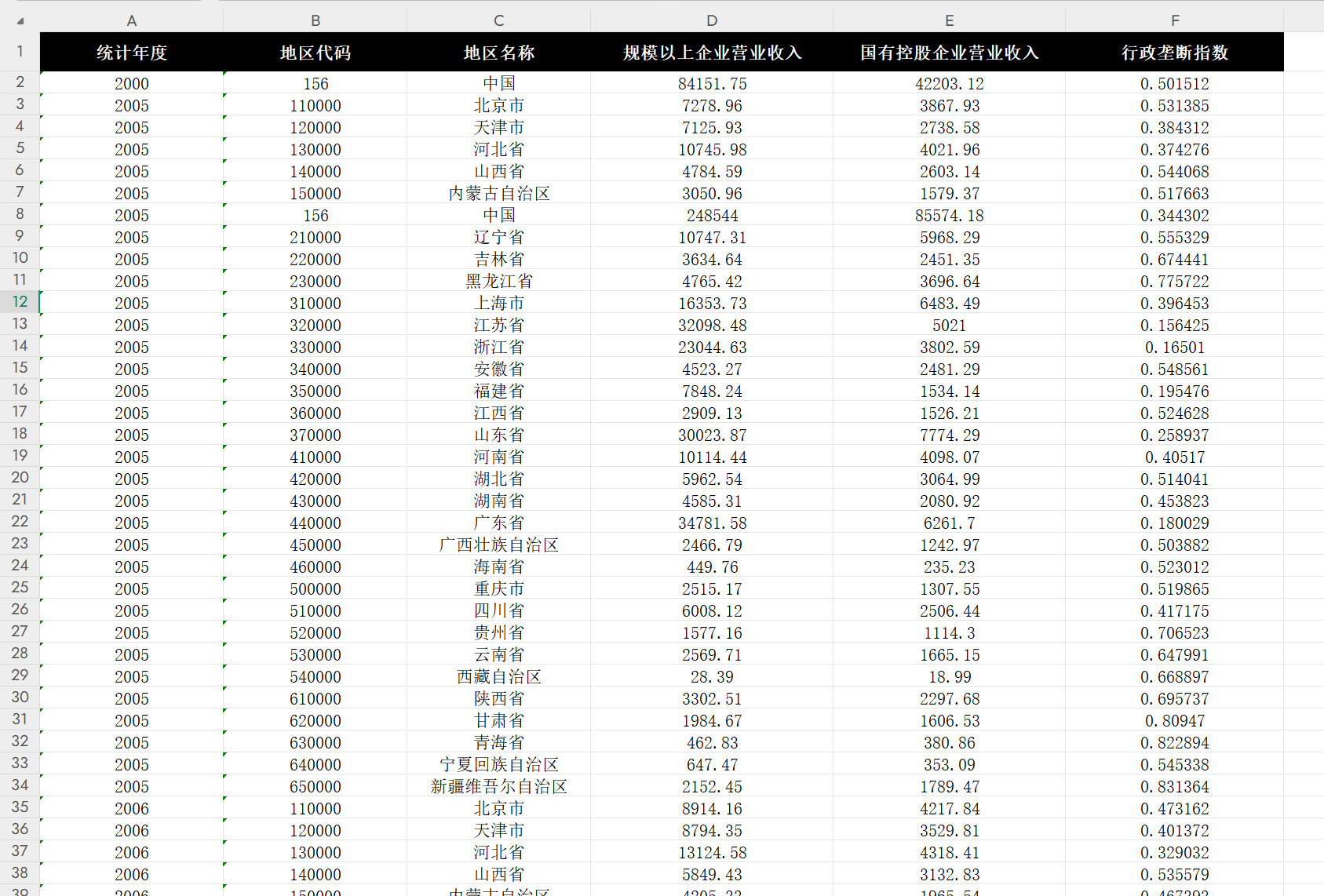 AdminMonopolyIndex [行政垄断指数] - 行政垄断指数=该地区国有控股企业营业收入/该地区规模以上工业企业营业收入