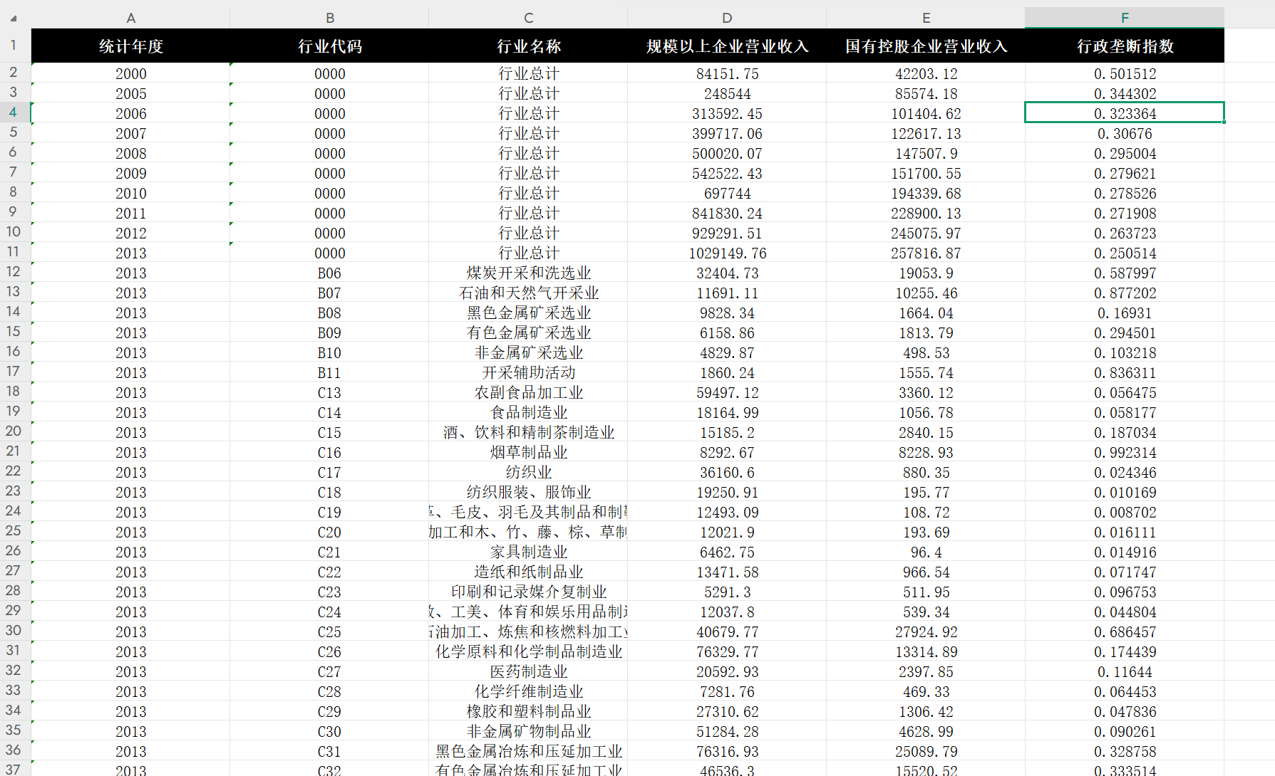 2.工业行业行政垄断指数统计表(年)2000 -2023