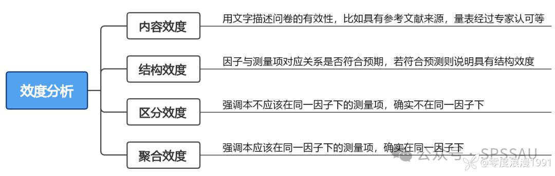 效度有很多种,可分为四种类型:内容效度、结构效度、区分效度、聚合效度。