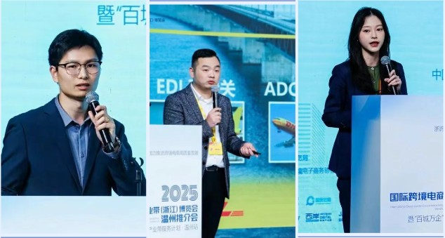 满客邮件大中华区负责人谢美莲做《AI智能邮件营销助力中国品牌出海》主题分享,PartnerBoost华东区商务负责人Ledo《联盟营销如何助力卖家实现第二增长曲线》主题分享,亚马逊招商经理Ethan-Wang做《求变拓新局,高质量出海》,全球赢华东区商务总监Andy《如何建立企业海外数字化品牌资产》主题分享,温州DHL客户经理 陈永做《聚势增长,物流链接全球》主题分享,宁波银行温州分行国际部杨倩节《跨境电商金管家》主题分享,义乌中国小商品城大数据有限公司 贸易服务部总监蔡万龙做《外贸履约服务生态赋能出口新航道》主题分享。各位嘉宾从跨境电商生态多个角度给出了中国制造出海解决方案。