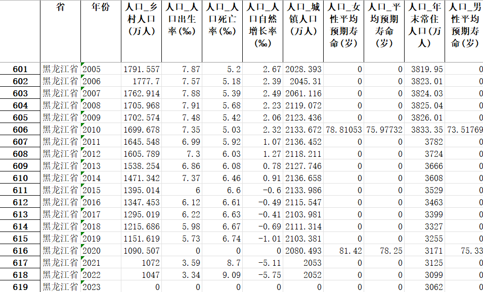 此数据内容均来自国家统计局,已整理成面板形式供大家直接使用。由于国家统计局部分指标更新过慢,部分年份数据存在缺少,请大家在使用时注意,后续也会更新最新年份的数据,请大家及时关注。部分数据展示: