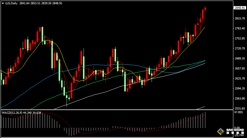 日内短线操作建议,先看金价在2843-2855区间振荡运行,如突破该区间时,上行目标在2860-2865,下行目标在2837-2832。