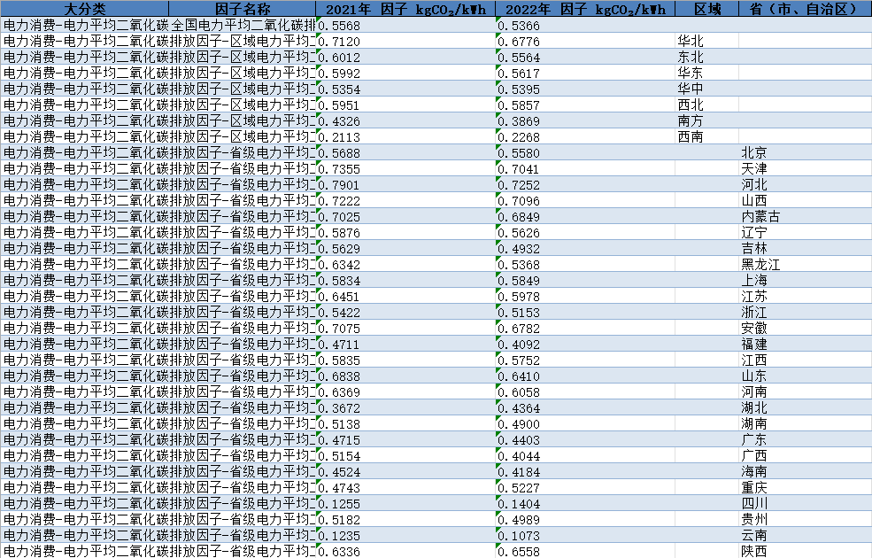 | 数据来源 | 原始数据来源于国家温室气体排放因子数据库 |