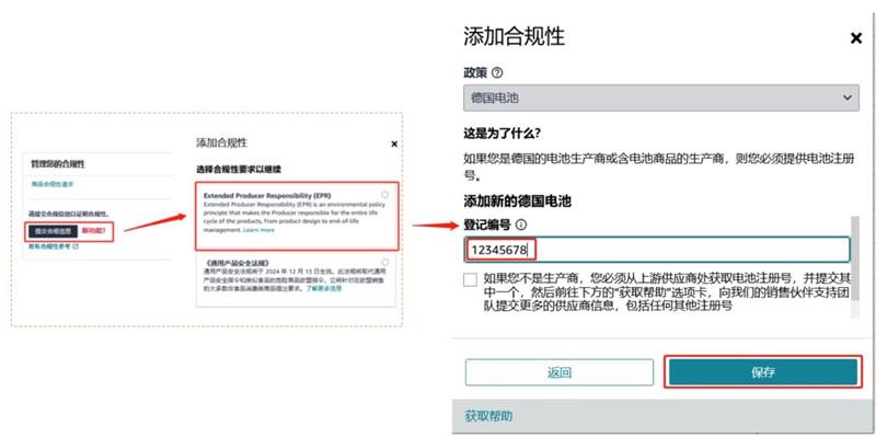向亚马逊提供电池注册号,您必须使用新的合规门户提交至亚马逊(详见第三部分“合规门户介绍和上传步骤”)。