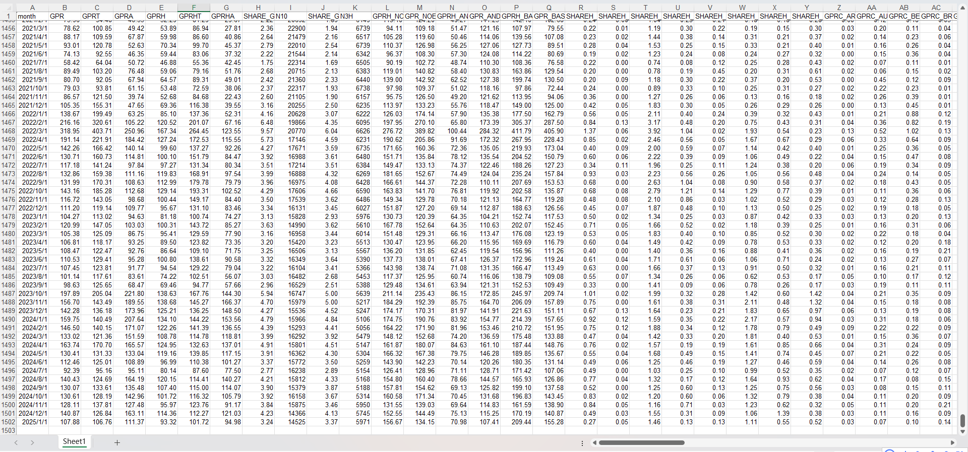 Recent GPR Index including Excluded Words | Historical GPR Index | Historical Basic GPR Index |