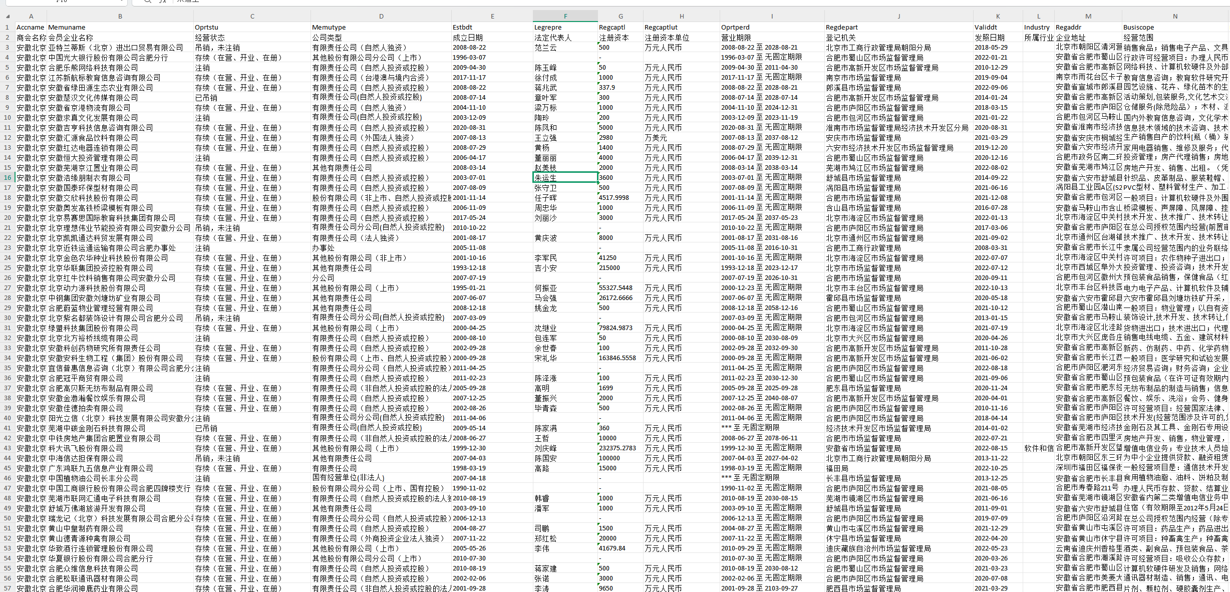 Oprtstu[经营状态]-会员企业的经营状态,如:存续,注销,开业,在业,登记成立等