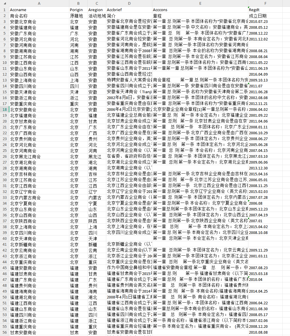 Aregion[活动地域]-商会活动地域,例如,上海浙江商会的活动地域为上海