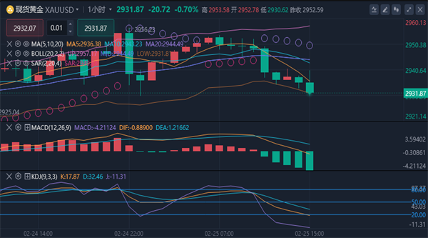 周二(2月25日)欧盘时段现货黄金震荡下行,短期来看,存在调整的风险,警惕高位波动率放大之后下跌,基本面上美联储降息预期提前,支撑金价创历史新高。
