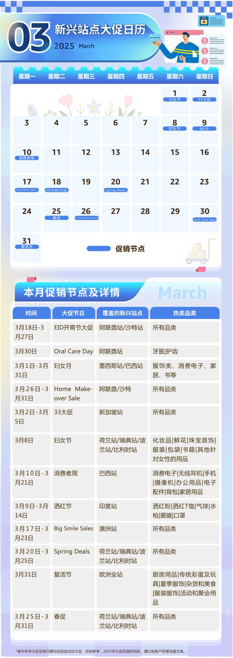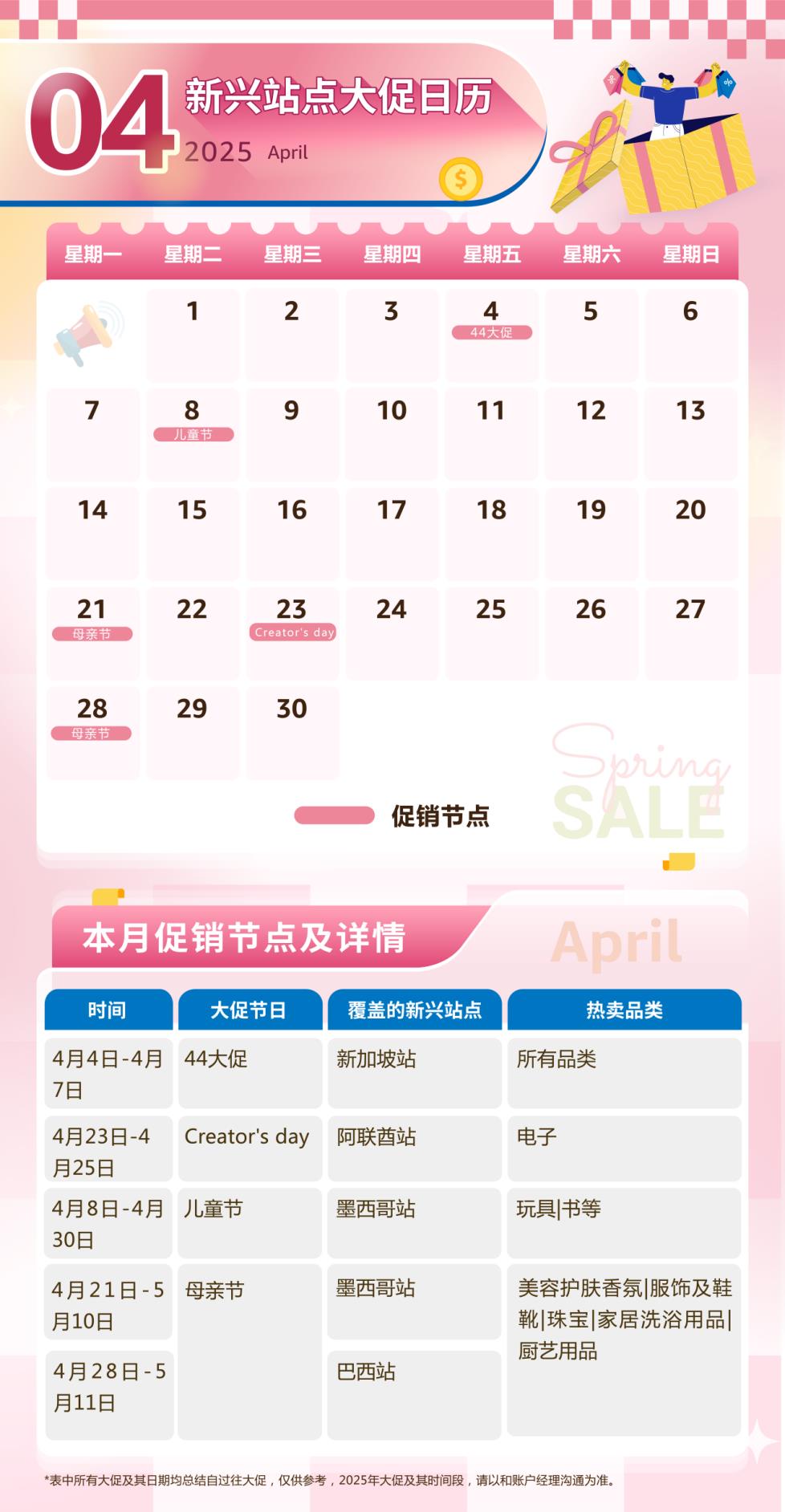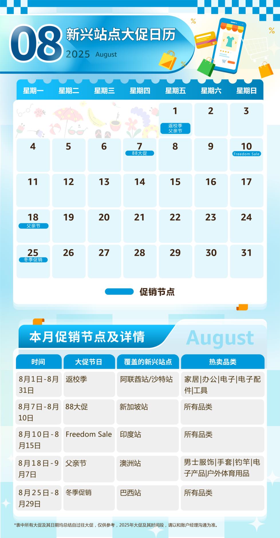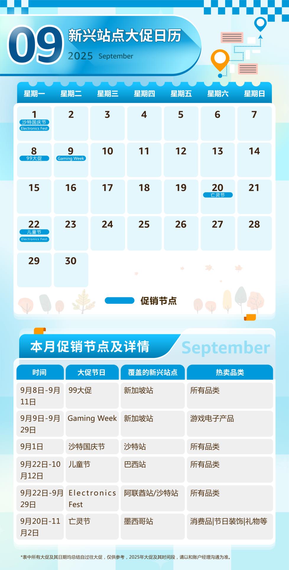 从1月的元旦、返校季到11月黑五网一,再到12月圣诞节,新兴站点全年促销无缝衔接,一个接一个,爆单机会不中断!