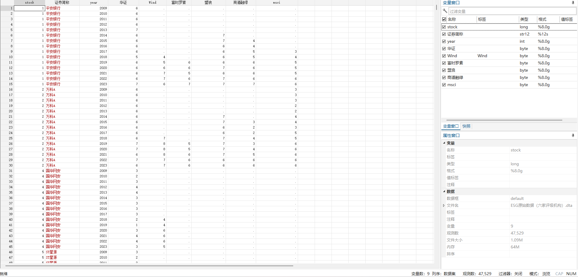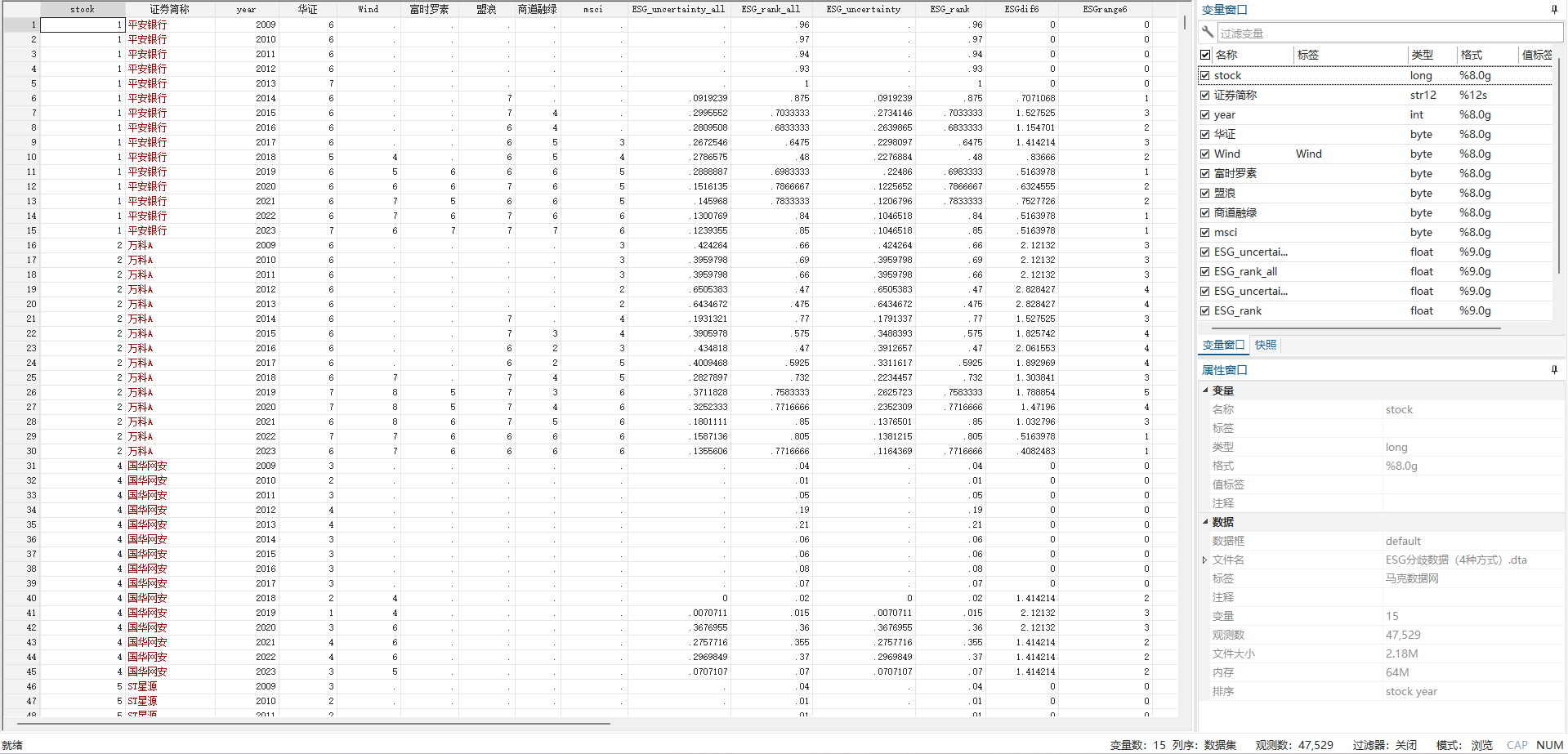 目前,我国资本市场上有多家机构为市场参与者提供ESG评级信息,不同评级机构对企业ESG表现的评价结果存在较大差异。团队利用4种方式计算了ESG分歧数据,根据华证、Wind、融绿、盟浪、MSCI、罗素,六家ESG评级数据计算ESG分歧,数据范围为2009-2023年,包括原始数据、dofile、结果