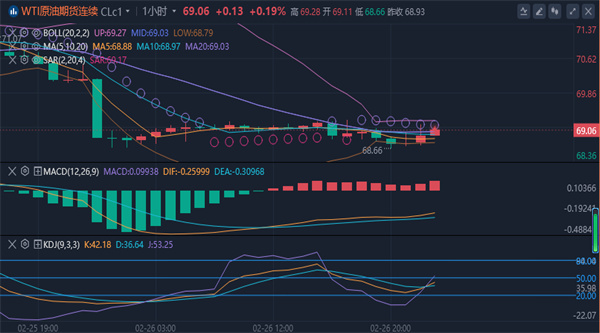 周三(2月26日)欧盘时段,WTI原油期货交易持平,在前一交易日大幅抛售后趋于稳定。WTI原油周二跌破70美元的心理支撑位,创下两个月来的最低水平。