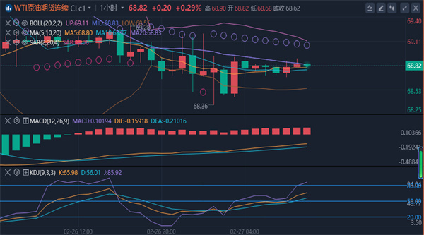 周三(2月26日)欧盘时段,WTI原油期货交易持平,在前一交易日大幅抛售后趋于稳定。WTI原油周二跌破70美元的心理支撑位,创下两个月来的最低水平。