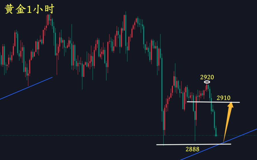 今日早间开盘之后就直接走跌,目前价格来到2900下方,在非空头趋势行情中,早间的下跌延续性较差,要重点看欧盘走势,关注2890—2888低点破位情况,可以依托于此支撑去看反弹多,上方压力在2910—2920,如果意外下破反抽再去看二次下跌。