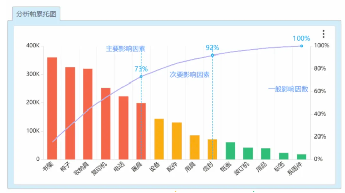 在管理和质量控制领域,帕累托分析(Pareto Analysis)是一种决策工具,用于识别少数重要因素对总体影响的程度。除此之外还可以有如下应用: