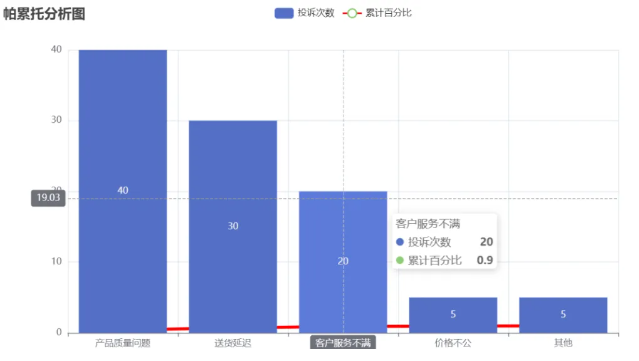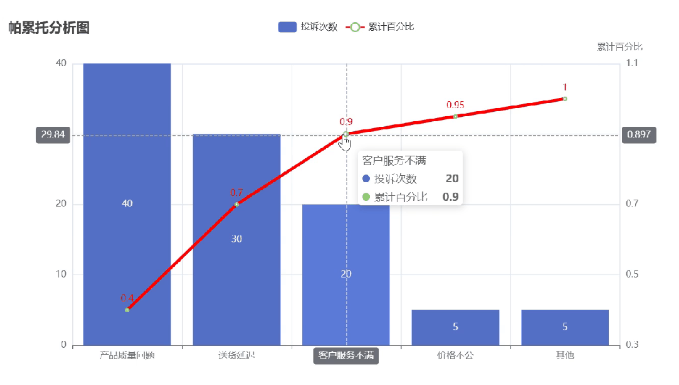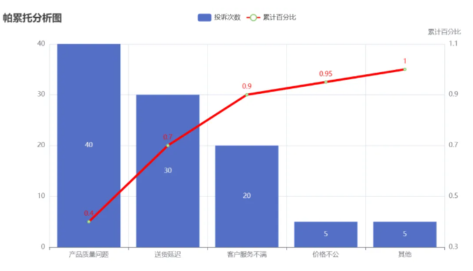 供应链管理:分析库存积压主因 客户投诉分析:定位核心服务问题 销售优化:聚焦高贡献产品线 故障排查:锁定高频故障点 今天我们基于简单的实验数据,使用Python中的Pyecharts库来开发一个帕累托分析图