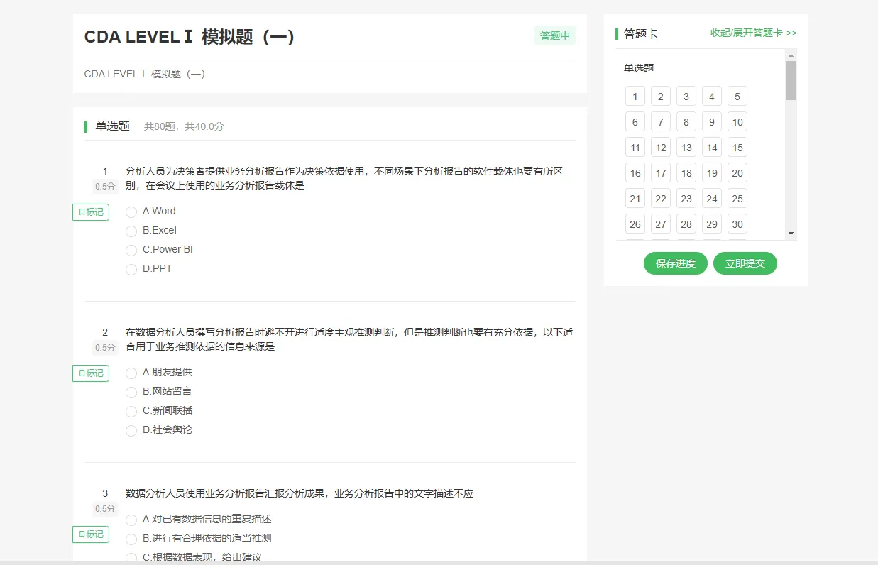 有多套模拟试卷,严格参照 CDA 考试流程、题型与难度设计。让你提前感受考场紧张氛围,掌握时间分配,调整心态,从容应对正式考试 。