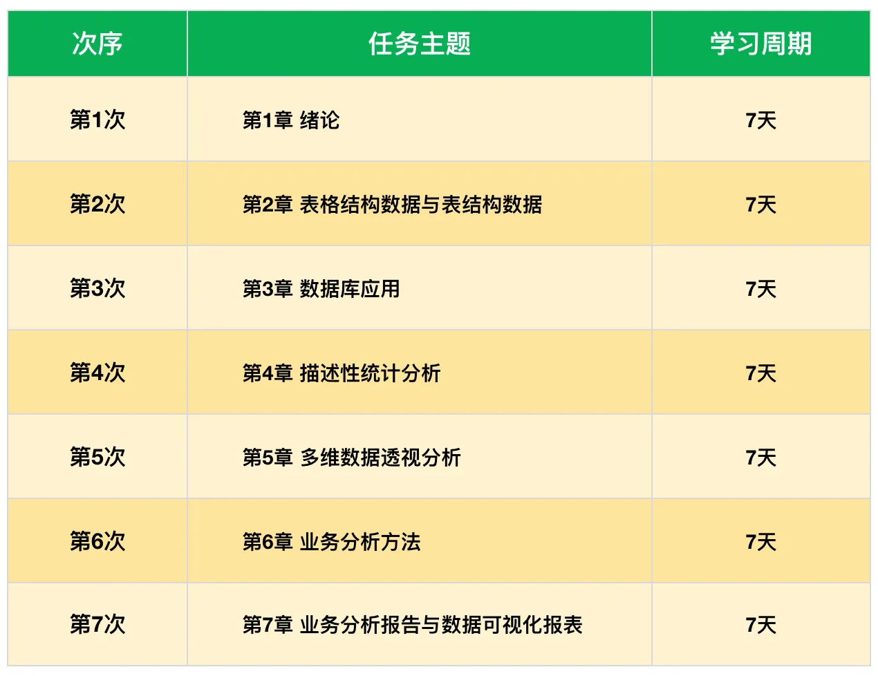 我们为你精心设计了7周学习计划,帮助你高效学习,逐步掌握数据分析的核心技能。无论你是备考CDA证书,还是想提升职场能力,这个计划都能为你提供清晰的学习路径。