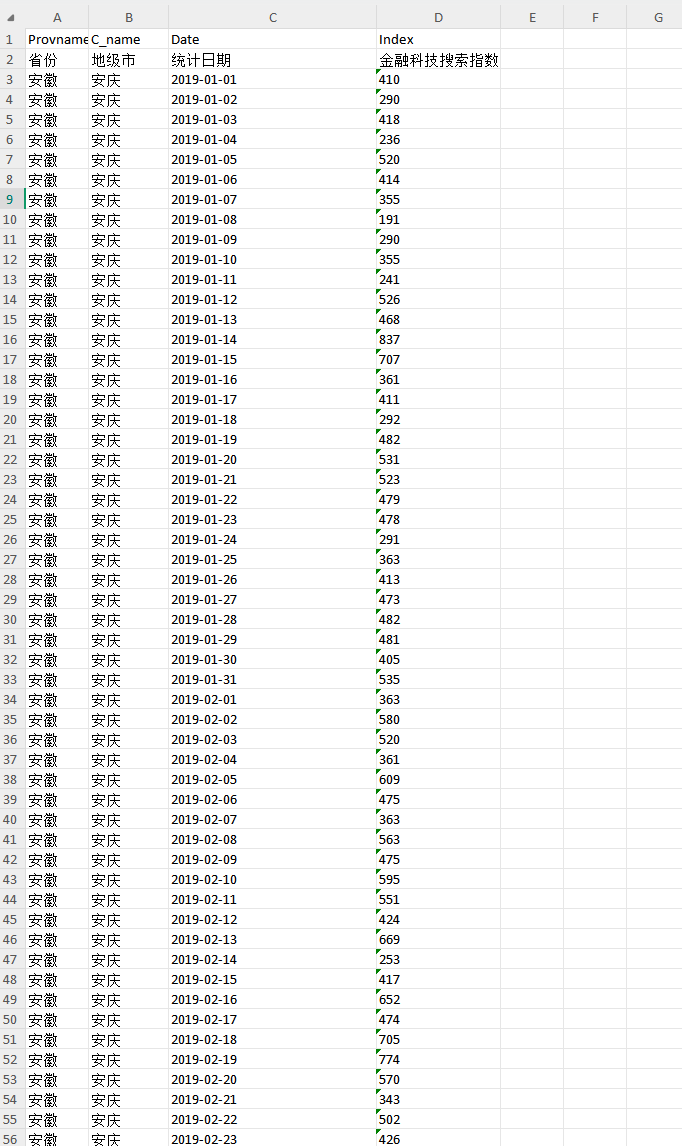 使用由国家科技创新规划、金融科技运行报告等相关重要新闻会议中提取的27 个金融科技关键词与所有省市匹配,收集 2011 年至今各省份金融科技词库的“PC+移动”端百度搜索指数,计算各关键词的每日词频;并将同一地区层面的所有关键词搜索指数加总,以此测度当地金融科技发展水平,数值越大代表金融科技发展水平越高。