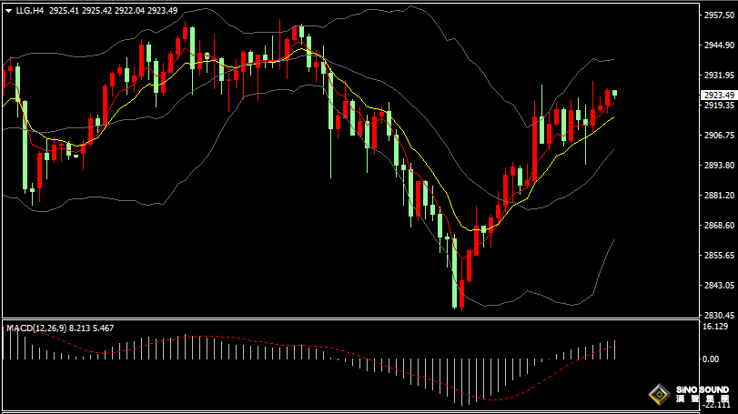 估计金价在2915-2930区间振荡整理为主,如突破该区间时,上行目标在2935-2940,下行目标在2910-2900附近。