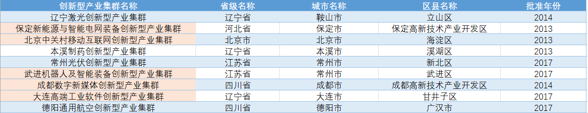需要注意的是,本数据集所带附件“创新型产业集群试点名单“中的“创新型产业集群名称”下,标为肉色指该产业集群被识别为“数字产业集群试点”,部分显示如下: