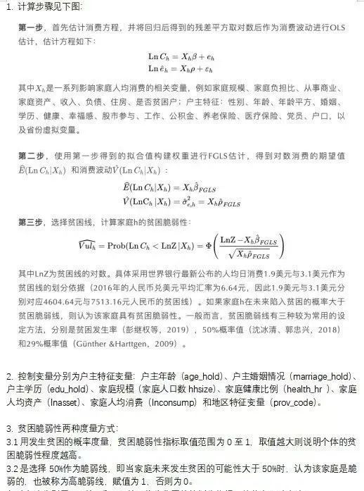 1.详细步骤见图片说明,贫困脆弱性两种度量方式:
