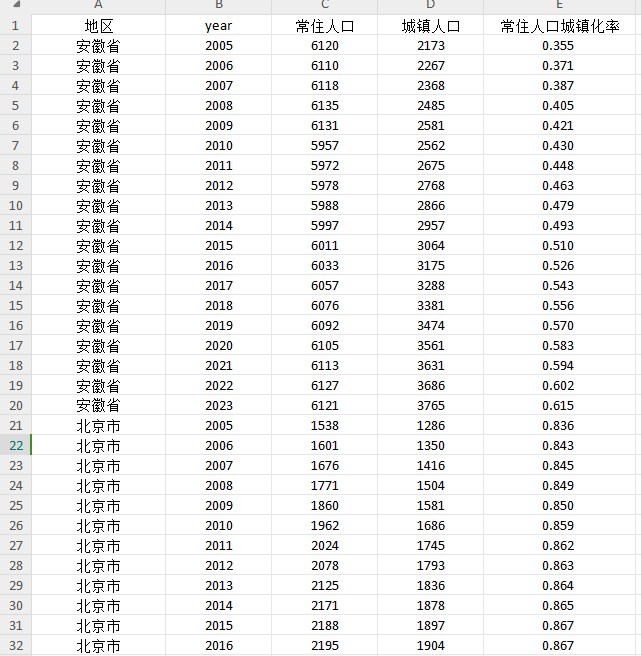 【数据】2005-2023年全国各省、地级市、县区(2022)城镇化率面板数