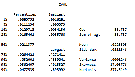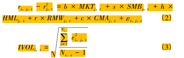 后基于回归结果计算残差标准差作为特质波动率度量指标 IVOL,计算方式见公式 ( 3) 。