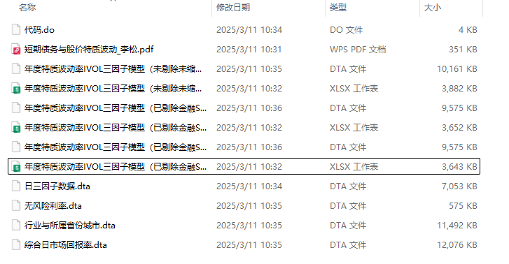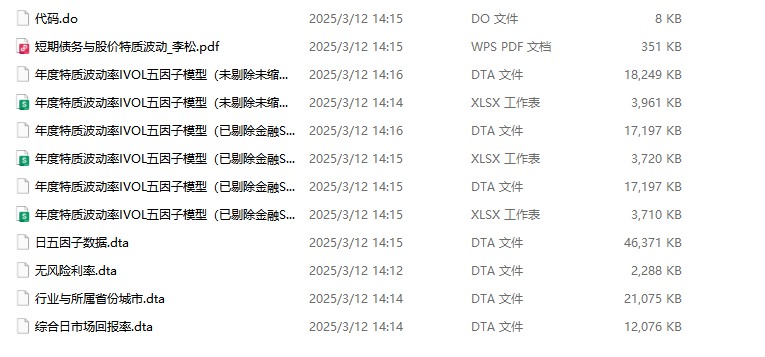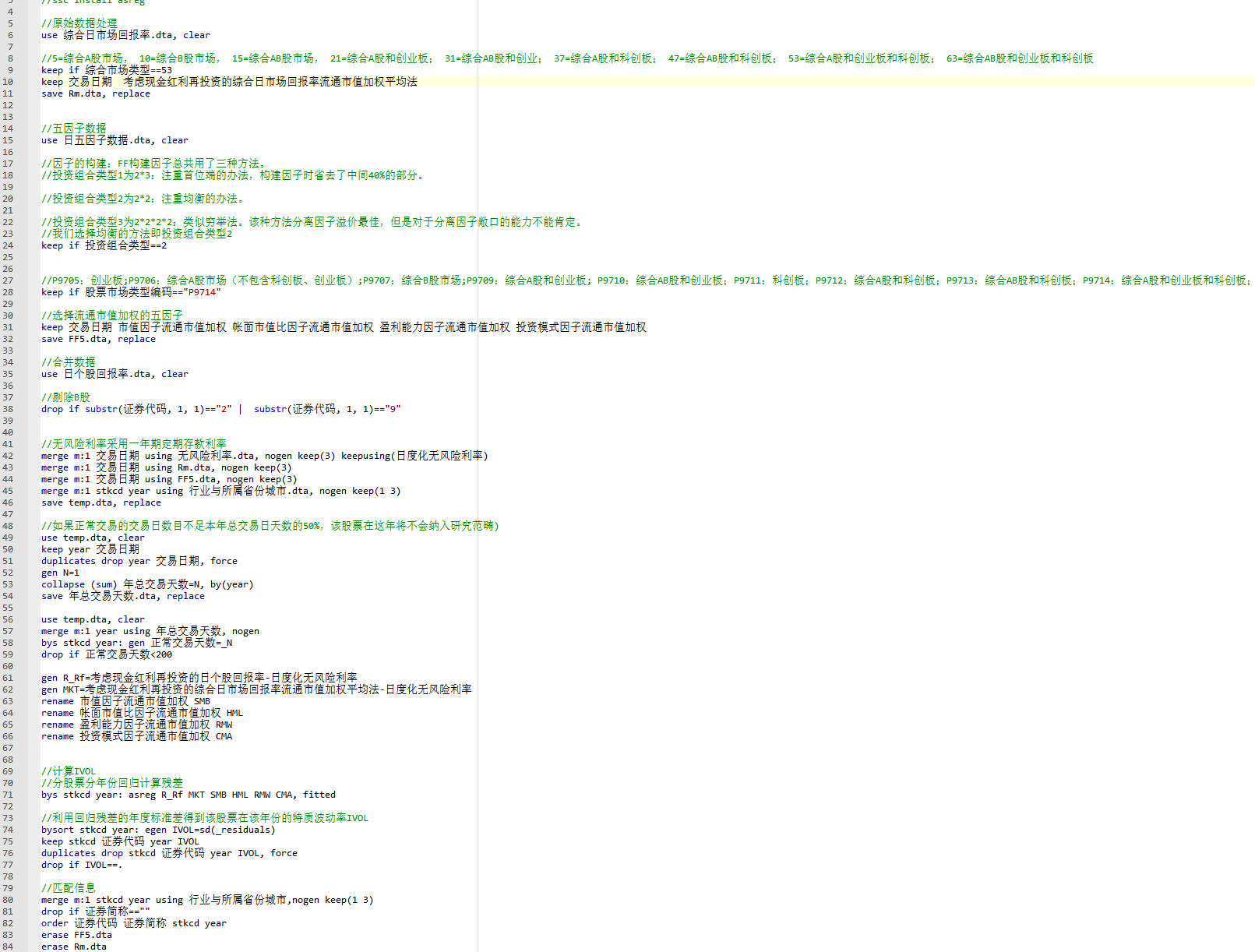 - 三个版本:年度特质波动率IVOL五因子模型(剔除金融STPT版)、年度特质波动率IVOL五因子模型(剔除金融STPT缩尾版)、年度特质波动率IVOL五因子模型(已剔除金融未剔除STPT版)、年度特质波动率IVOL三因子模型(剔除金融STPT版)、年度特质波动率IVOL三因子模型(剔除金融STPT缩尾版)、年度特质波动率IVOL三因子模型(已剔除金融未剔除STPT版)