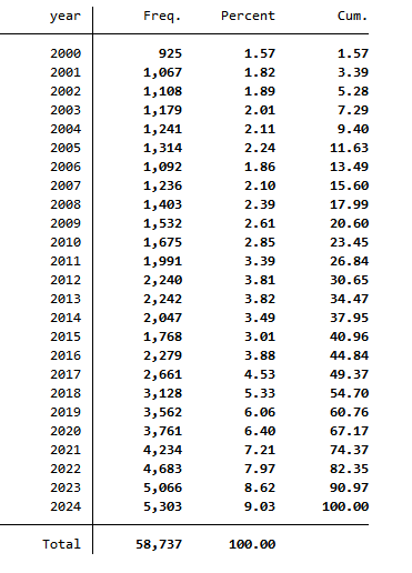- 文件格式:Dta格式(使用Stata打开)、Xlsx格式(使用Excel打开)