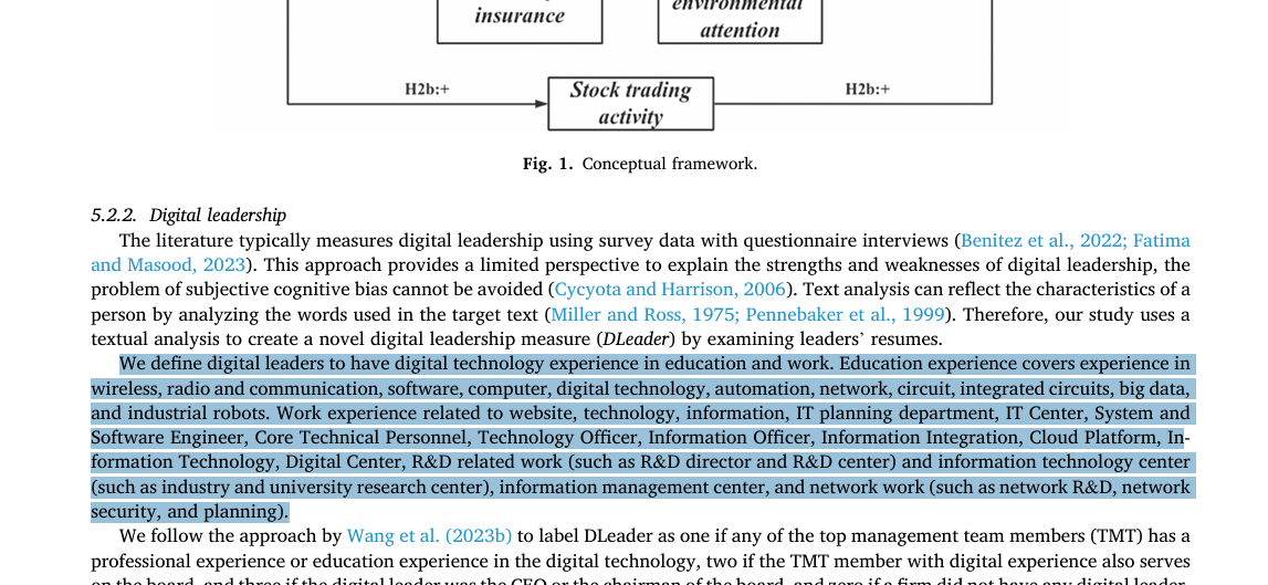 三、参考文献:Qiao P, Zhao Y, Fung A, et al. How digital leadership guides ESG sustainability[J]. Research in International Business and Finance, 2025, 73: 102644.