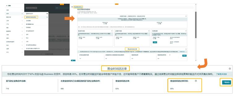 ● 您可以在卖家后台>库存>管理卖家自配送商品>配送洞察控制面板中下载营业时间送达率(BHDR)报告。