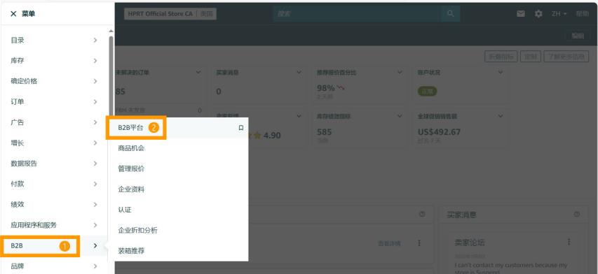 亚马逊店铺上线的 ASIN 默认在 C 端和 B 端同时可售,您的店铺可能已经有了 B端订单!按以下步骤进入 B2B 平台可查看店铺的 B 端销售情况: